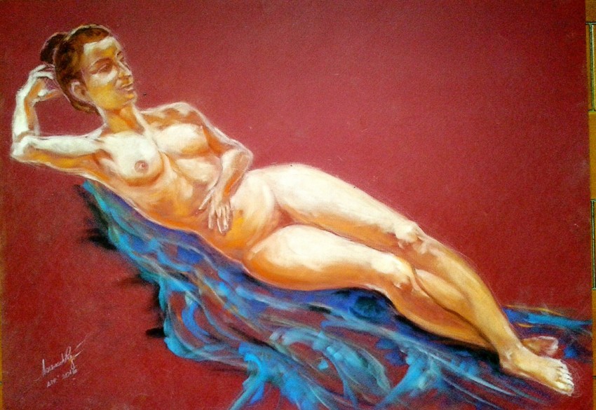 Modella sdraiata. Pan pastel colors su cartoncino (2016)